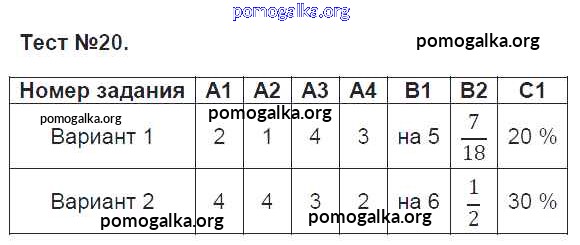Готовые ответы - Математика 6 класс КИМ Попова Л.П. - тест 20