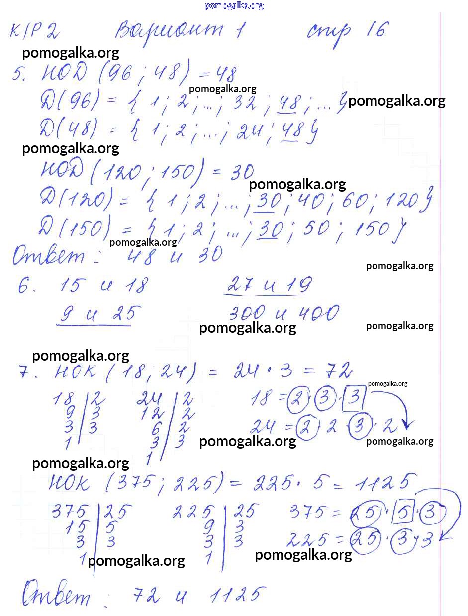 Готовые ответы - Математика 6 класс рабочая тетрадь для контрольных работ Рудницкая В.Н. (к уч. Виленкина Н.Я.) - часть 1. страница 16