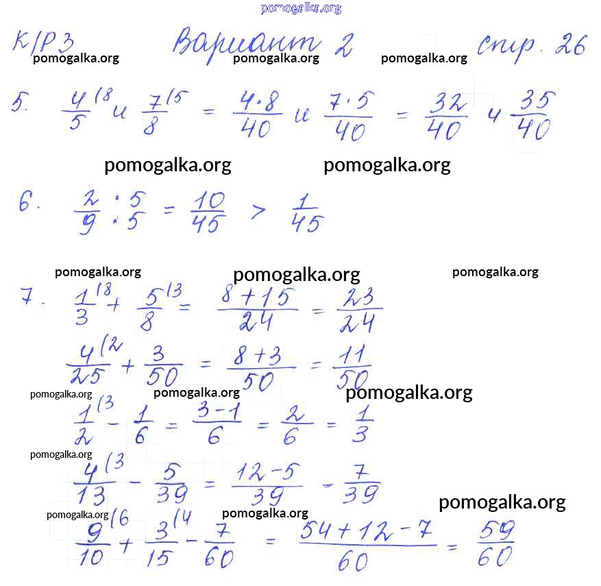 Готовые ответы - Математика 6 класс рабочая тетрадь для контрольных работ Рудницкая В.Н. (к уч. Виленкина Н.Я.) - часть 1. страница 26