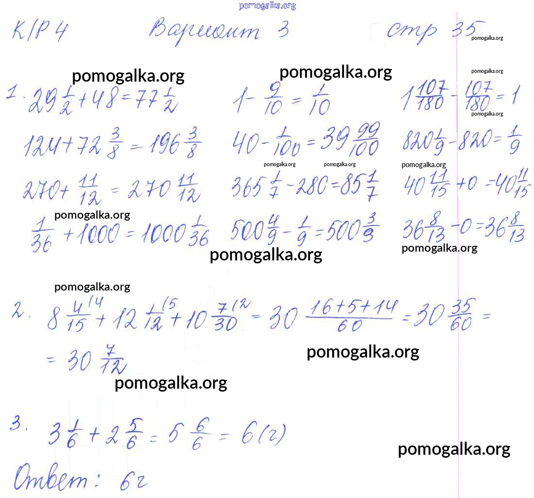 Готовые ответы - Математика 6 класс рабочая тетрадь для контрольных работ Рудницкая В.Н. (к уч. Виленкина Н.Я.) - часть 1. страница 35
