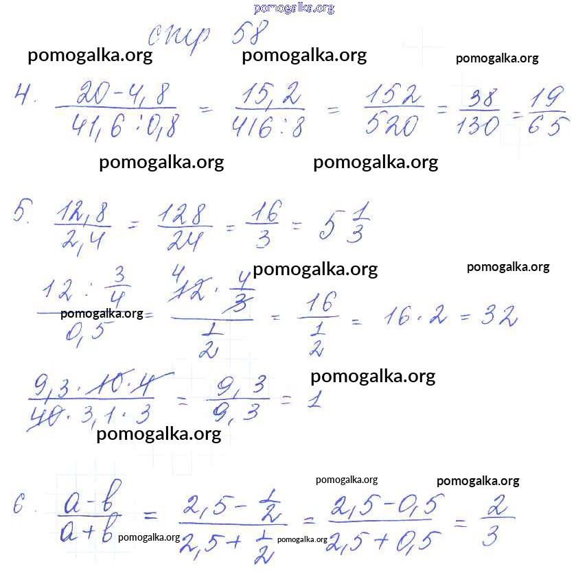 Готовые ответы - Математика 6 класс рабочая тетрадь для контрольных работ Рудницкая В.Н. (к уч. Виленкина Н.Я.) - часть 1. страница 58