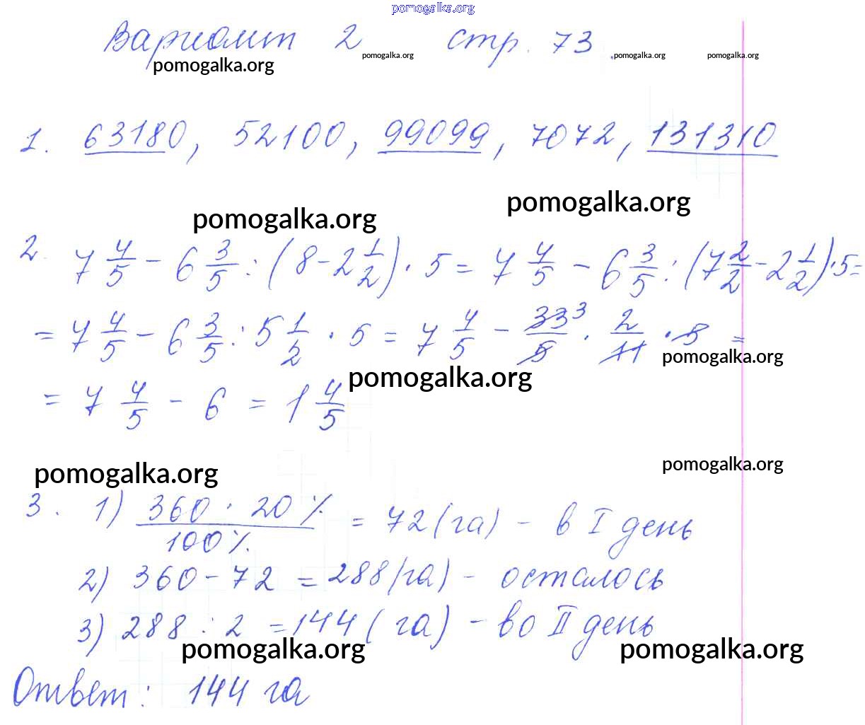 Готовые ответы - Математика 6 класс рабочая тетрадь для контрольных работ Рудницкая В.Н. (к уч. Виленкина Н.Я.) - часть 1. страница 73