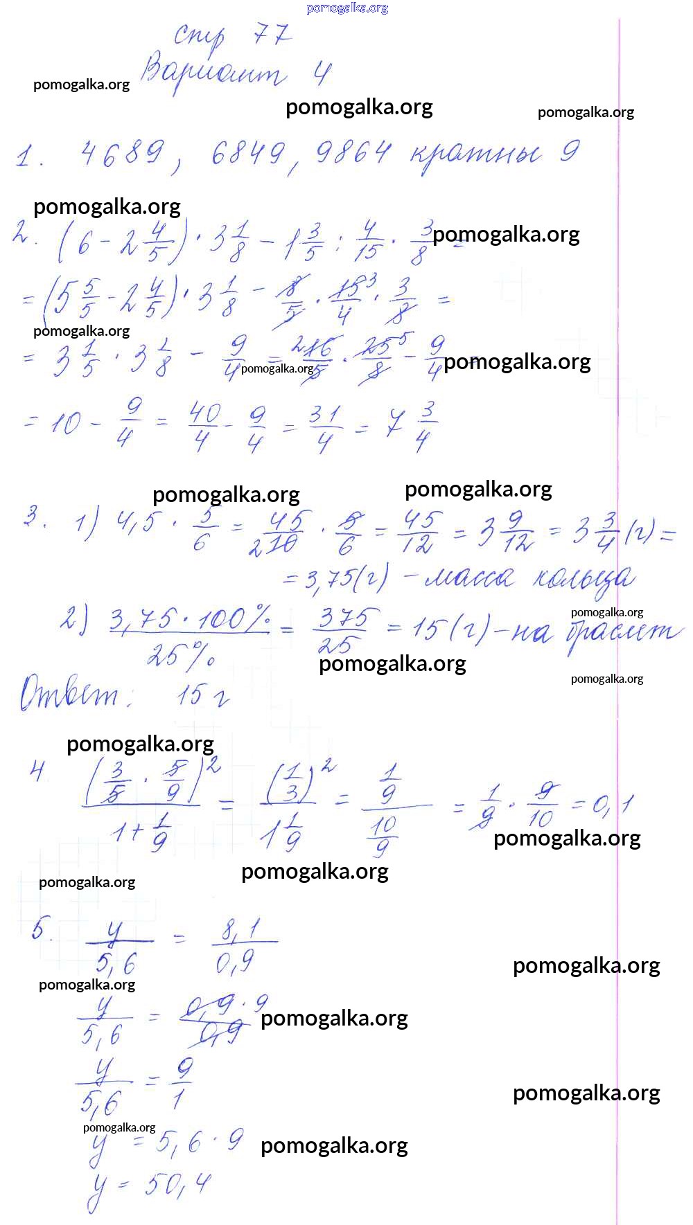 Готовые ответы - Математика 6 класс рабочая тетрадь для контрольных работ Рудницкая В.Н. (к уч. Виленкина Н.Я.) - часть 1. страница 77