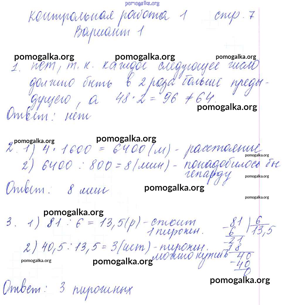 Готовые ответы - Математика 6 класс рабочая тетрадь для контрольных работ Рудницкая В.Н. (к уч. Виленкина Н.Я.) - часть 2. страница 7