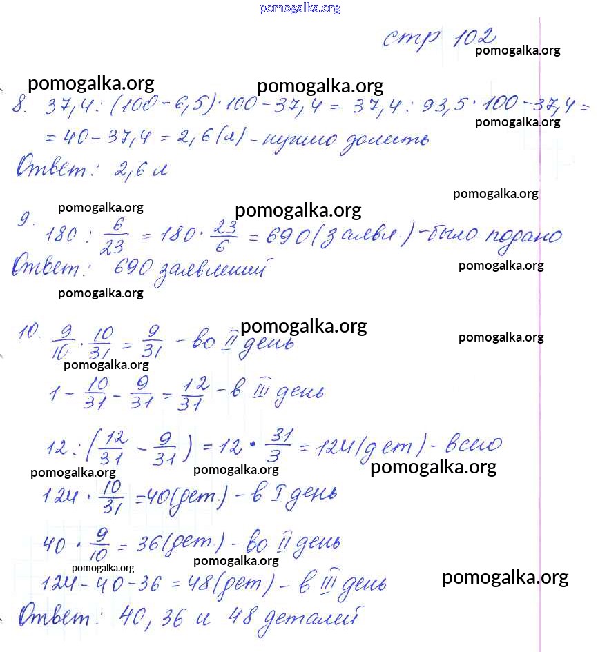 Готовые ответы - Математика 6 класс рабочая тетрадь Ерина Т.М. (к уч. Виленкина) - часть 1. страница 102