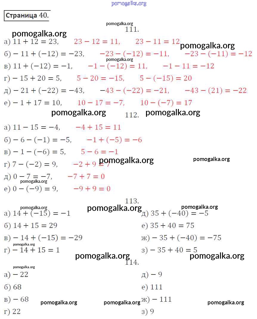 Готовые ответы - Математика 6 класс рабочая тетрадь Потапов М.К. - страница 40