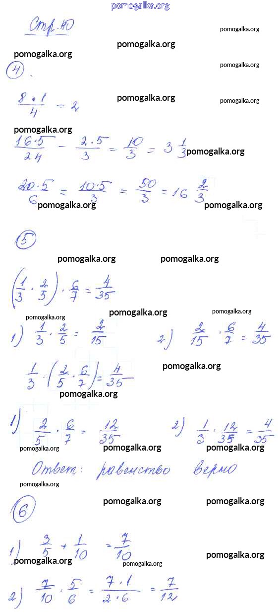 Готовые ответы - Математика 6 класс рабочая тетрадь Рудницкая В.Н. - часть 1. страница 40
