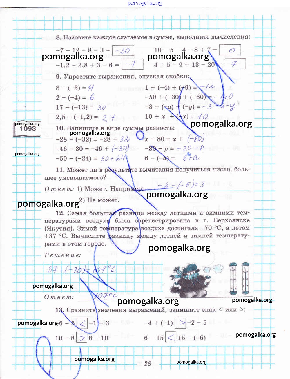 Готовые ответы - Математика 6 класс рабочая тетрадь Рудницкая В.Н. - часть 2. страница 28