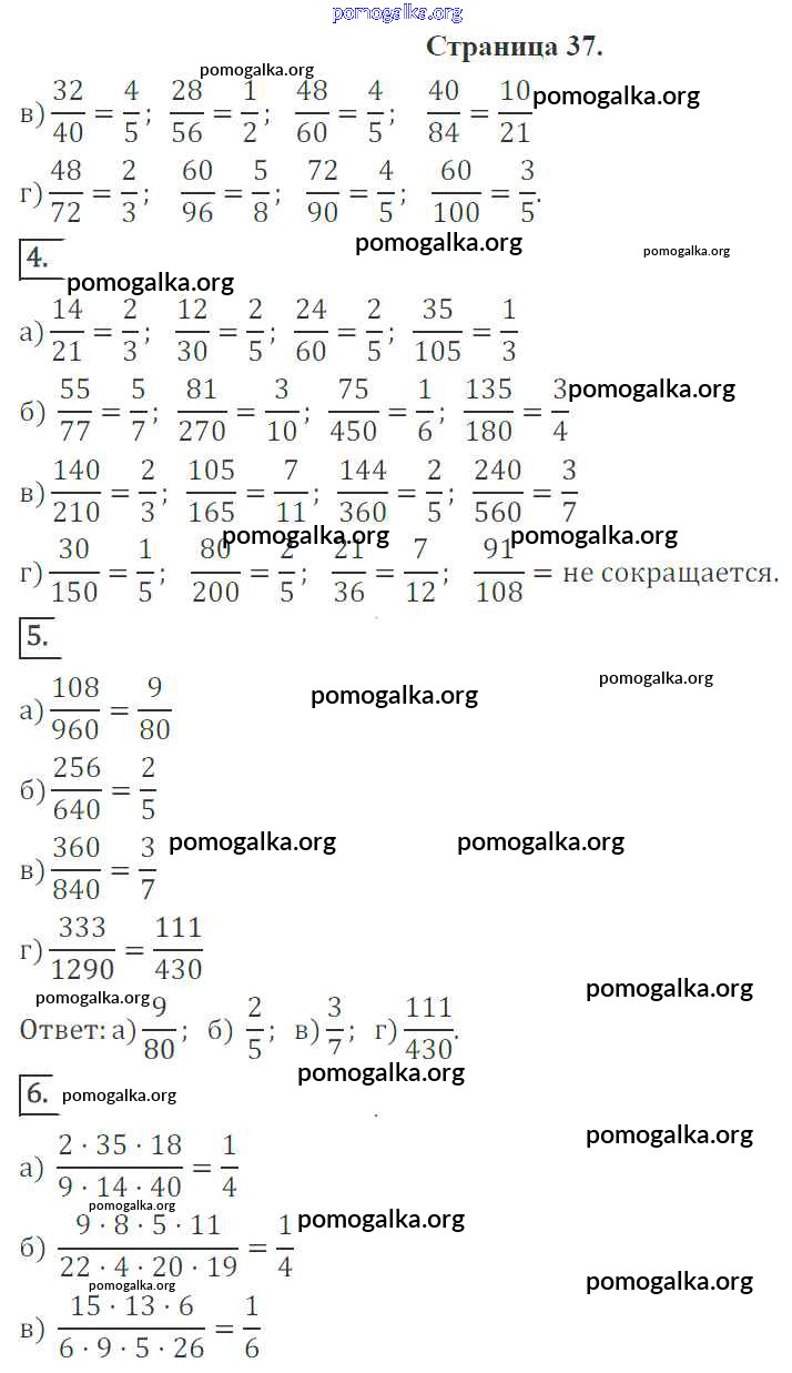 Готовые ответы - Математика 6 класс рабочая тетрадь Ерина Т.М. (к уч. Виленкина Н.Я.) - страница 37
