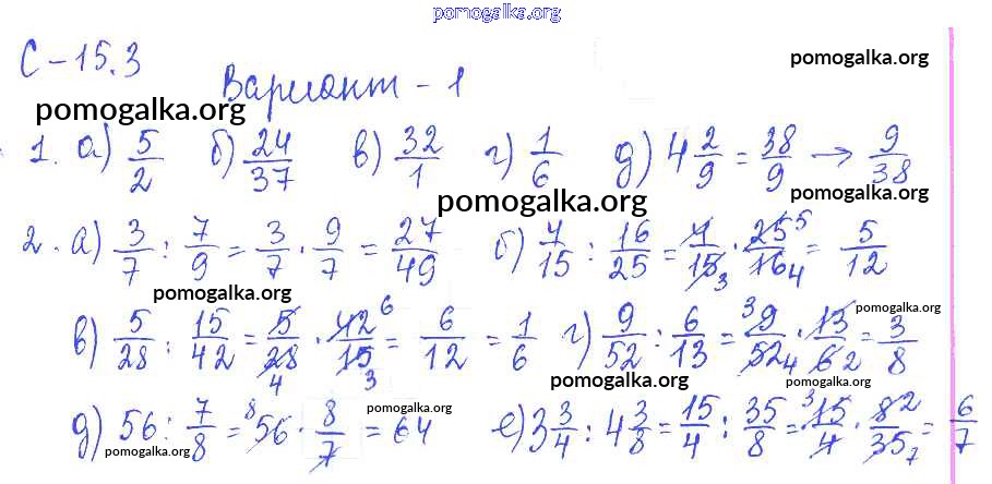 Готовые ответы - Математика 6 класс самостоятельные работы Зубарева И.И. - 3. вариант СР-15 1