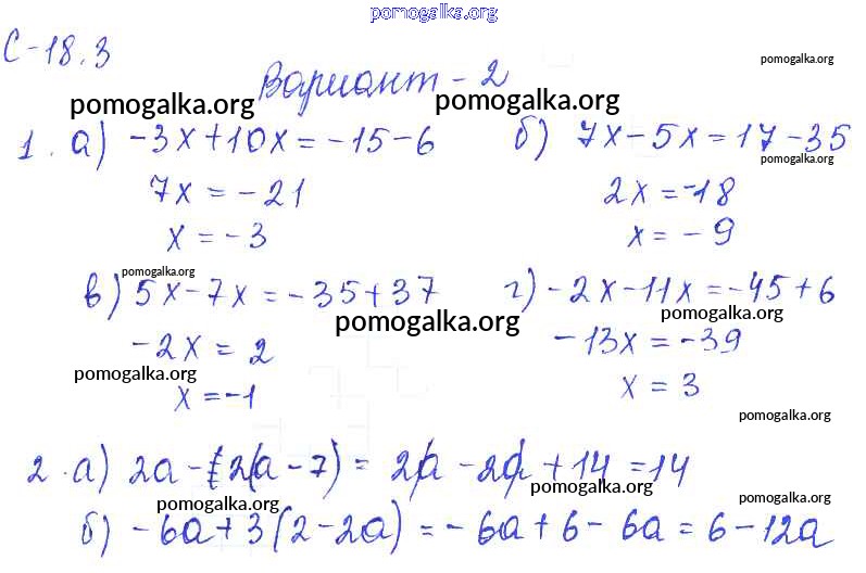 Готовые ответы - Математика 6 класс самостоятельные работы Зубарева И.И. - 3. вариант СР-18 2