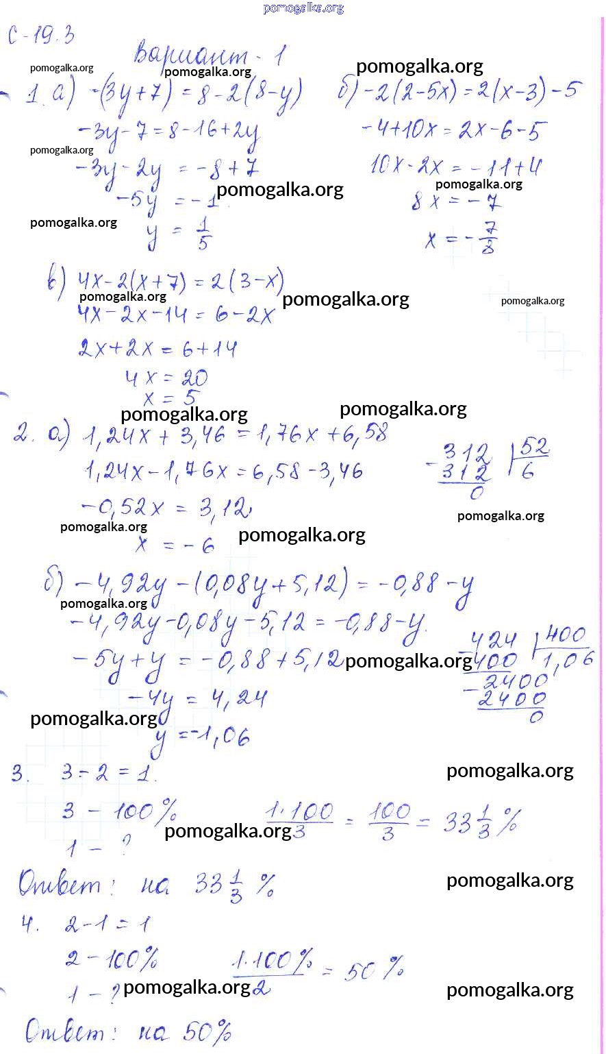 Готовые ответы - Математика 6 класс самостоятельные работы Зубарева И.И. - 3. вариант СР-19 1