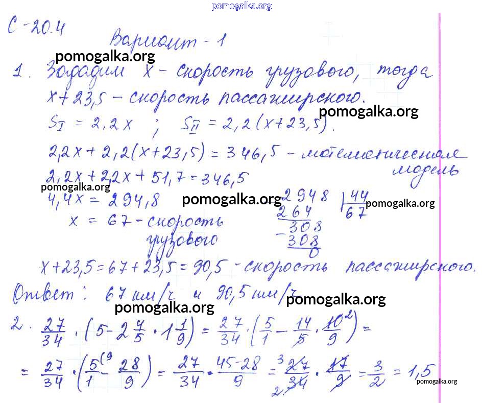Готовые ответы - Математика 6 класс самостоятельные работы Зубарева И.И. - 4. вариант СР-20 1
