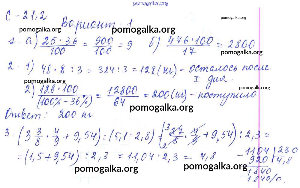 Готовые ответы - Математика 6 класс самостоятельные работы Зубарева И.И. - 2. вариант СР-21 1