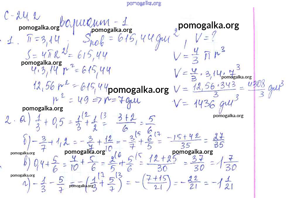 Готовые ответы - Математика 6 класс самостоятельные работы Зубарева И.И. - 2. вариант СР-24 1