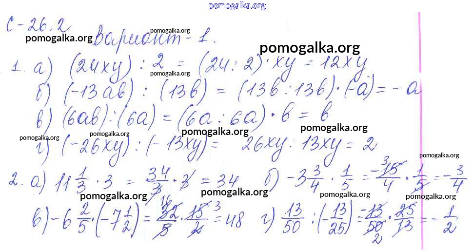 Готовые ответы - Математика 6 класс самостоятельные работы Зубарева И.И. - 2. вариант СР-26 1