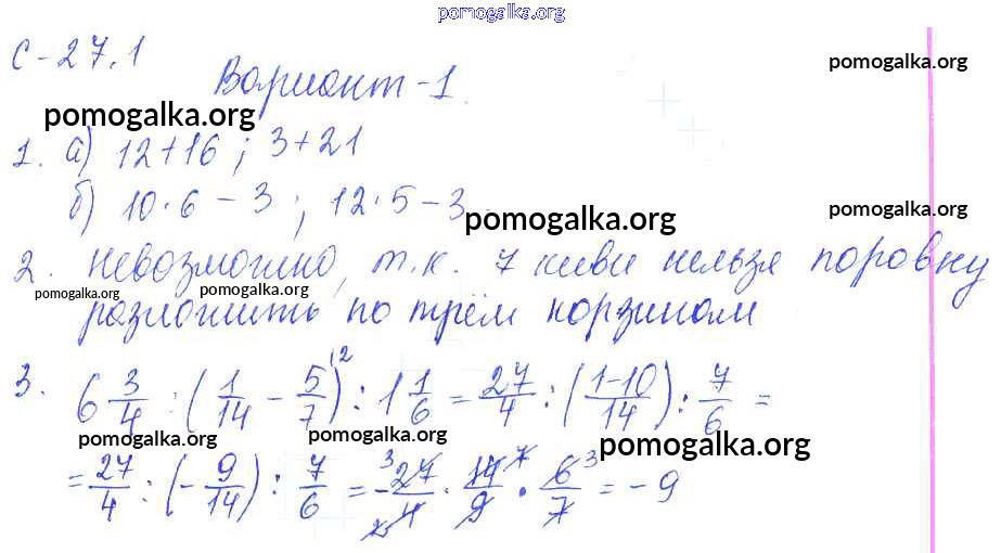 Готовые ответы - Математика 6 класс самостоятельные работы Зубарева И.И. - 1. вариант СР-27 1