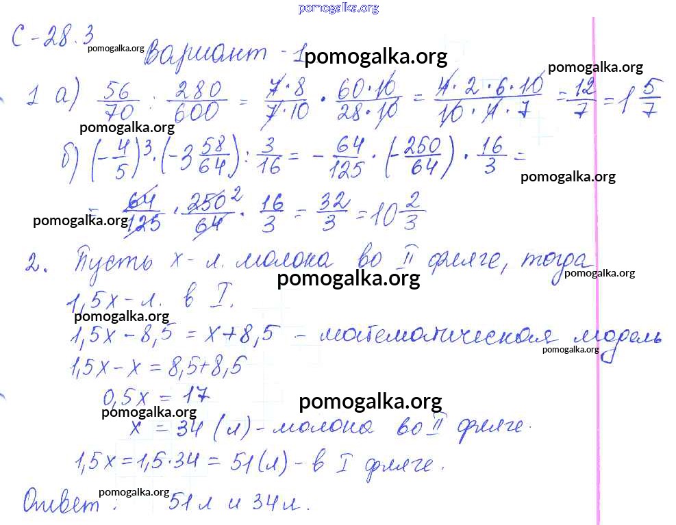 Готовые ответы - Математика 6 класс самостоятельные работы Зубарева И.И. - 3. вариант СР-28 1
