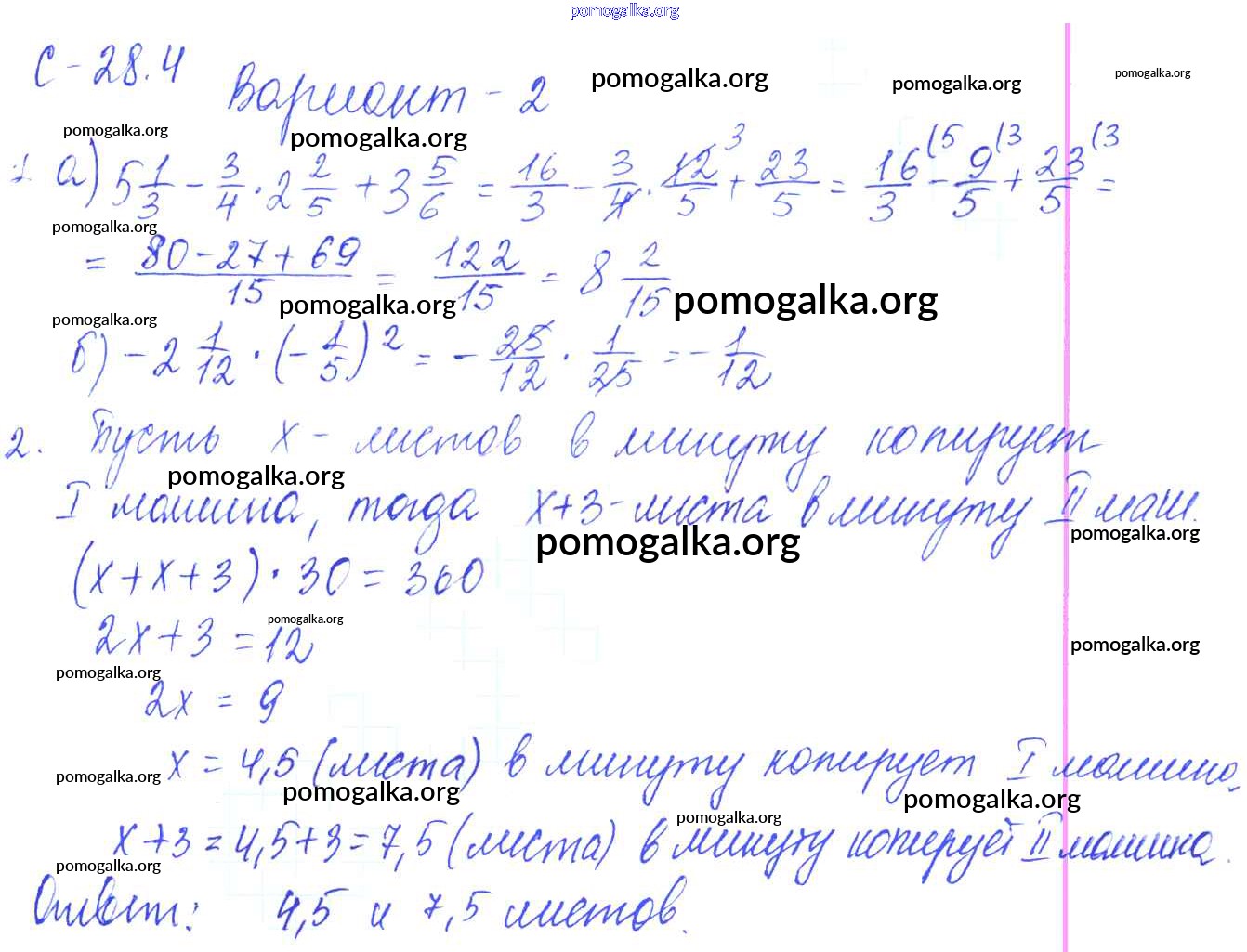 Готовые ответы - Математика 6 класс самостоятельные работы Зубарева И.И. - 4. вариант СР-28 2