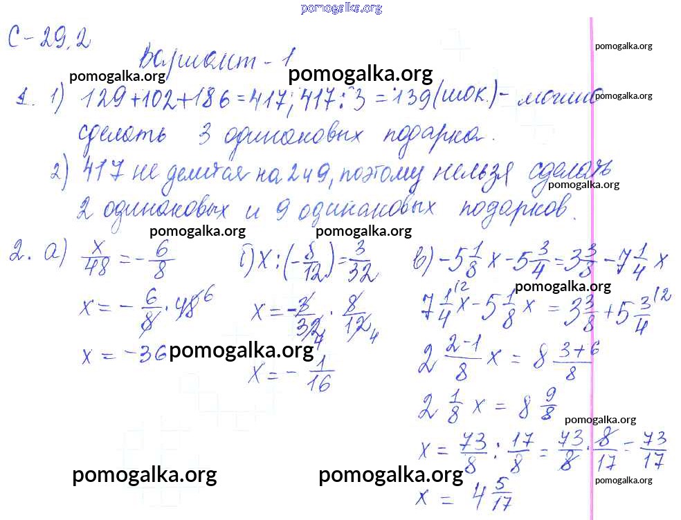 Готовые ответы - Математика 6 класс самостоятельные работы Зубарева И.И. - 2. вариант СР-29 1