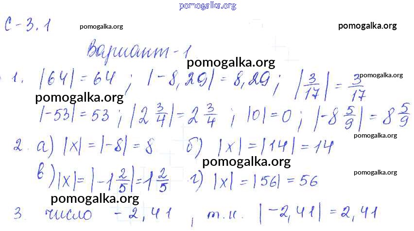 Готовые ответы - Математика 6 класс самостоятельные работы Зубарева И.И. - 1. вариант СР-3 1