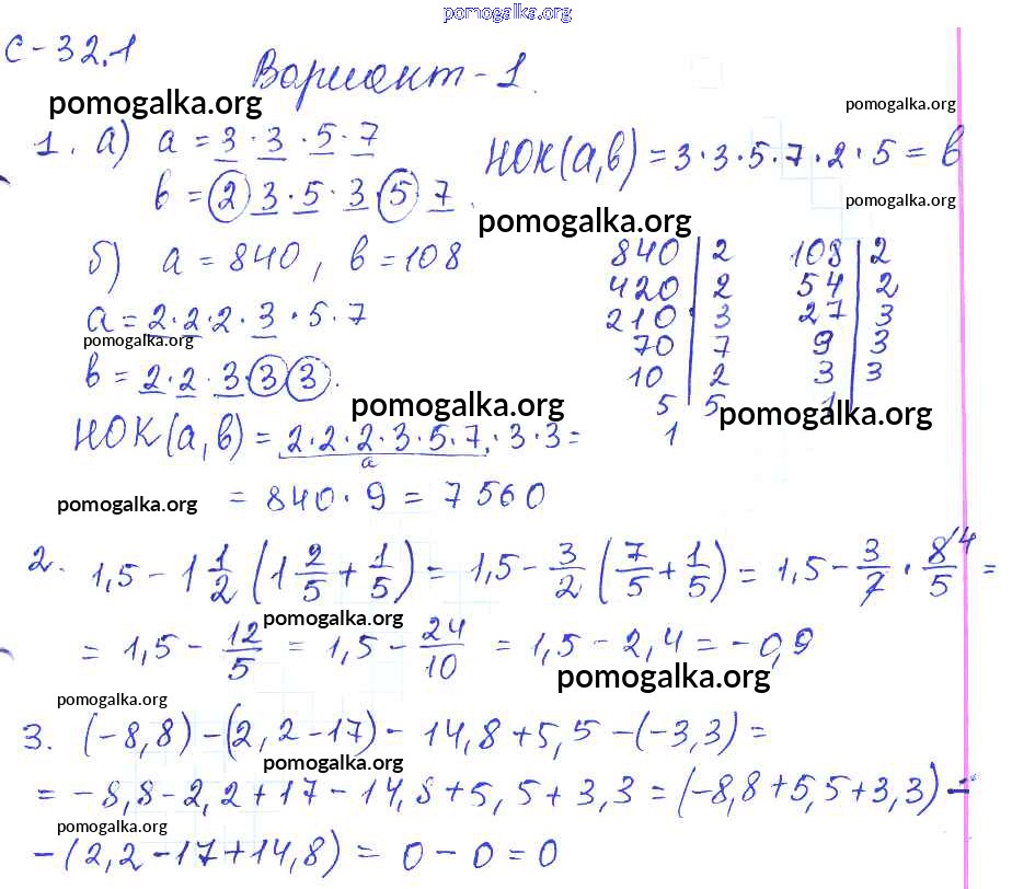 Готовые ответы - Математика 6 класс самостоятельные работы Зубарева И.И. - 1. вариант СР-32 1