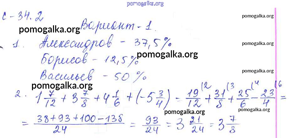 Готовые ответы - Математика 6 класс самостоятельные работы Зубарева И.И. - 2. вариант СР-34 1
