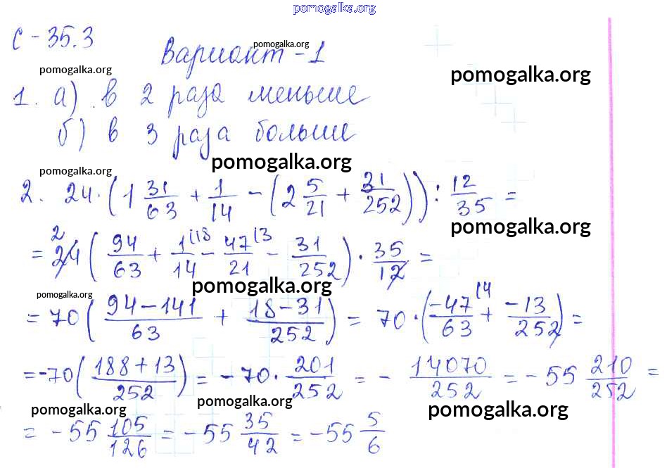 Готовые ответы - Математика 6 класс самостоятельные работы Зубарева И.И. - 3. вариант СР-35 1