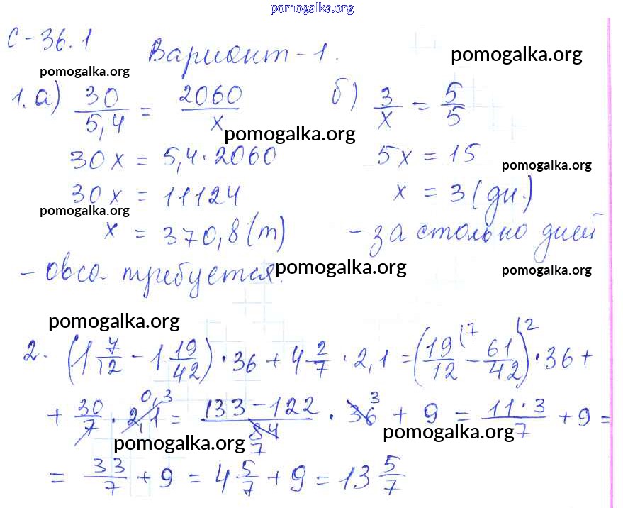 Готовые ответы - Математика 6 класс самостоятельные работы Зубарева И.И. - 1. вариант СР-36 1