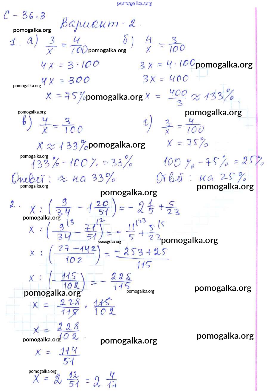 Готовые ответы - Математика 6 класс самостоятельные работы Зубарева И.И. - 3. вариант СР-36 2