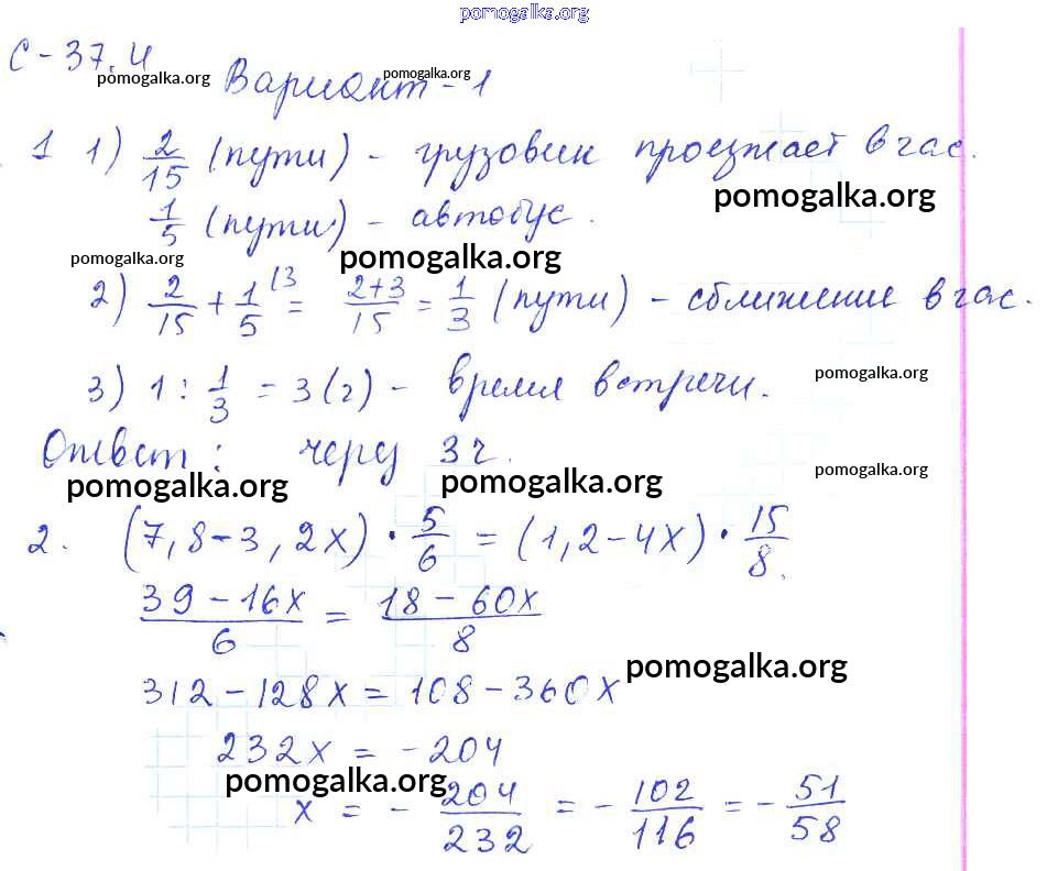 Готовые ответы - Математика 6 класс самостоятельные работы Зубарева И.И. - 4. вариант СР-37 1