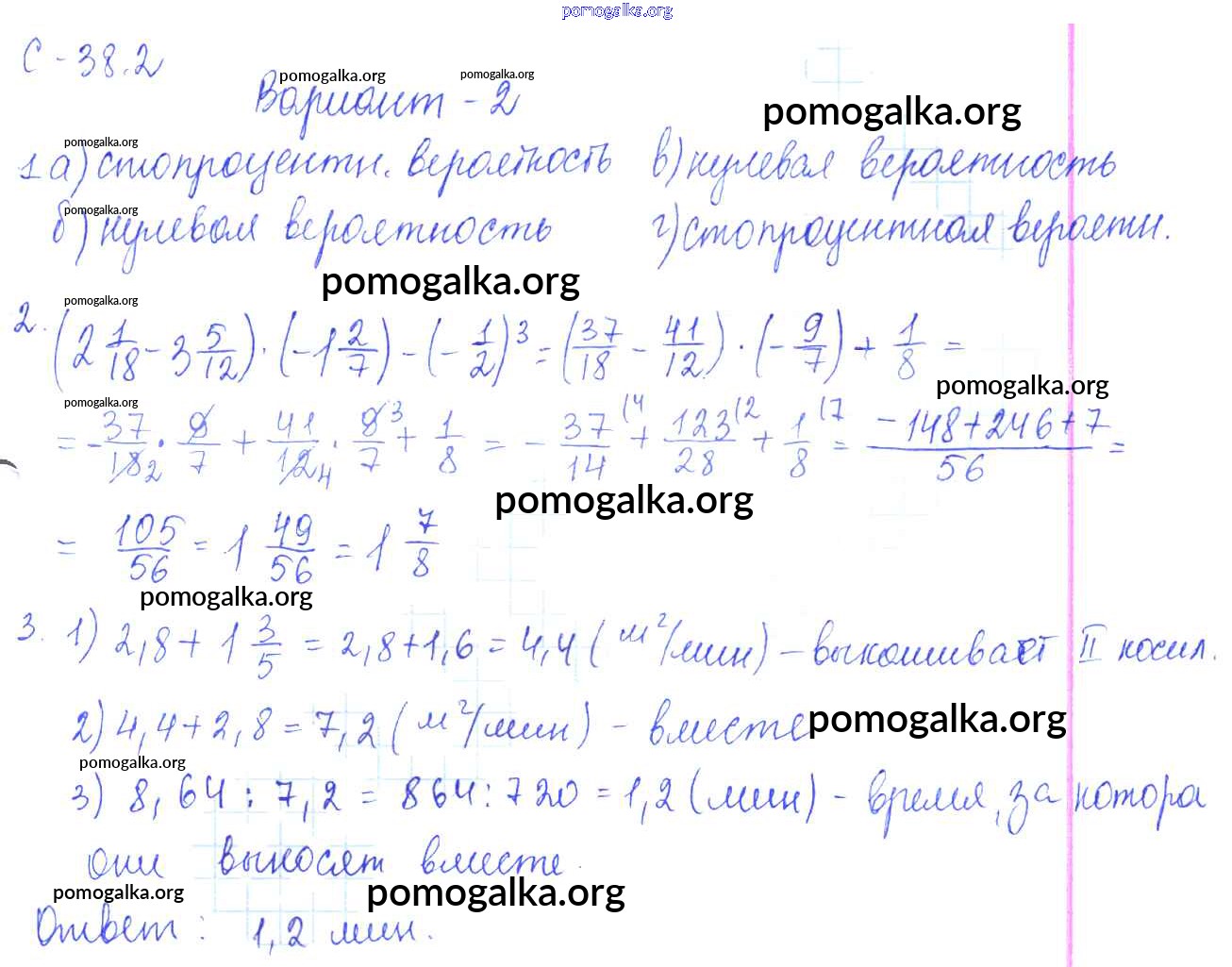 Готовые ответы - Математика 6 класс самостоятельные работы Зубарева И.И. - 2. вариант СР-38 2