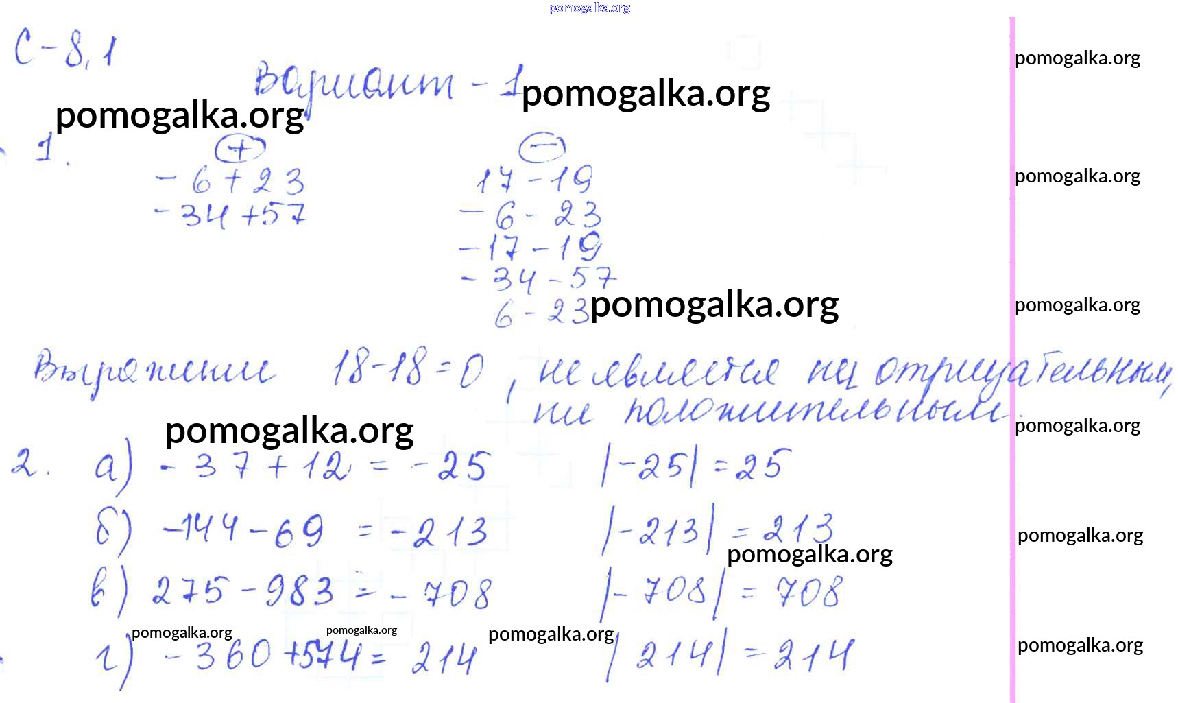 Готовые ответы - Математика 6 класс самостоятельные работы Зубарева И.И. - 1. вариант СР-8 1