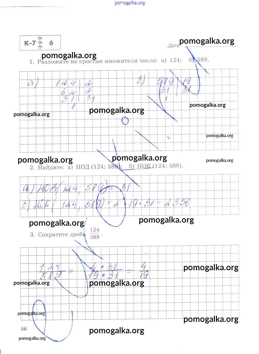 Готовые ответы - Математика 6 класс тетрадь для контрольных работ Зубарева И.И. - часть 1. страница 56