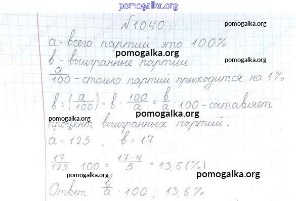 Готовые ответы - Математика 6 класс Дорофеев Г.В. - упражнение 1040