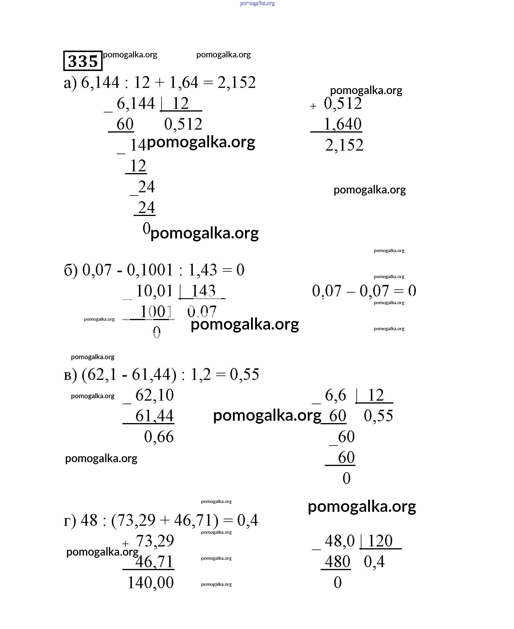 Готовые ответы - Математика 6 класс Дорофеев Г.В. - упражнение 335