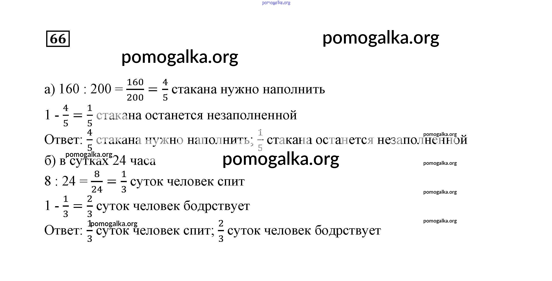 Готовые ответы - Математика 6 класс Дорофеев Г.В. - упражнение 66