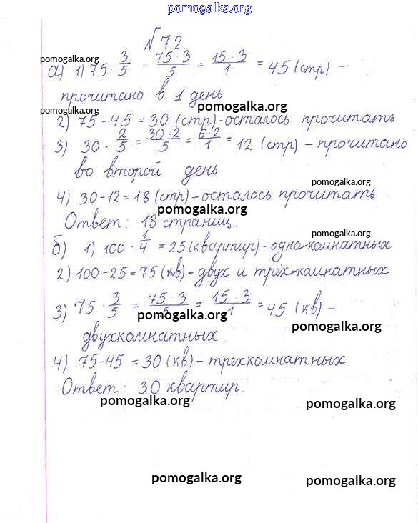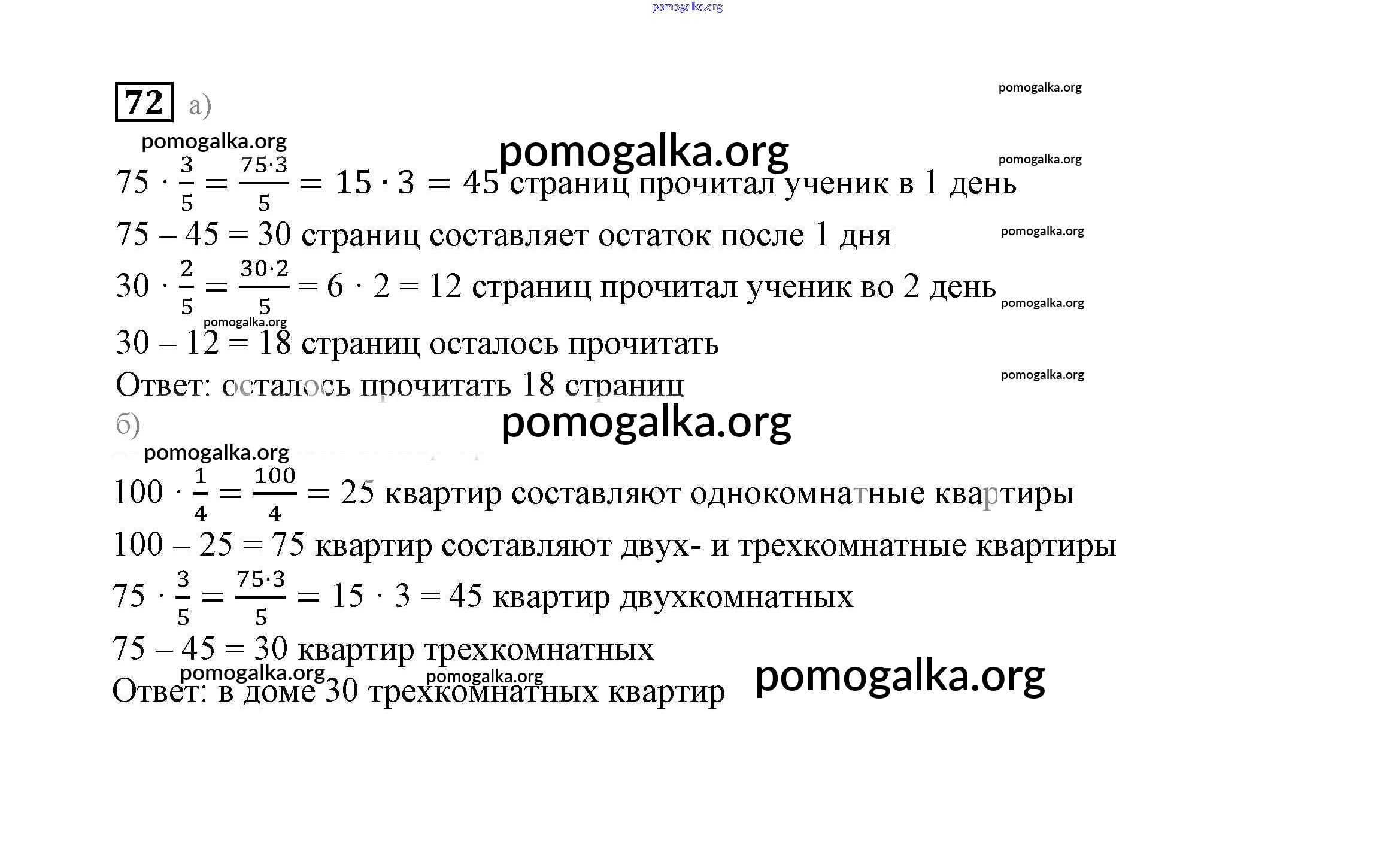 Готовые ответы - Математика 6 класс Дорофеев Г.В. - упражнение 72