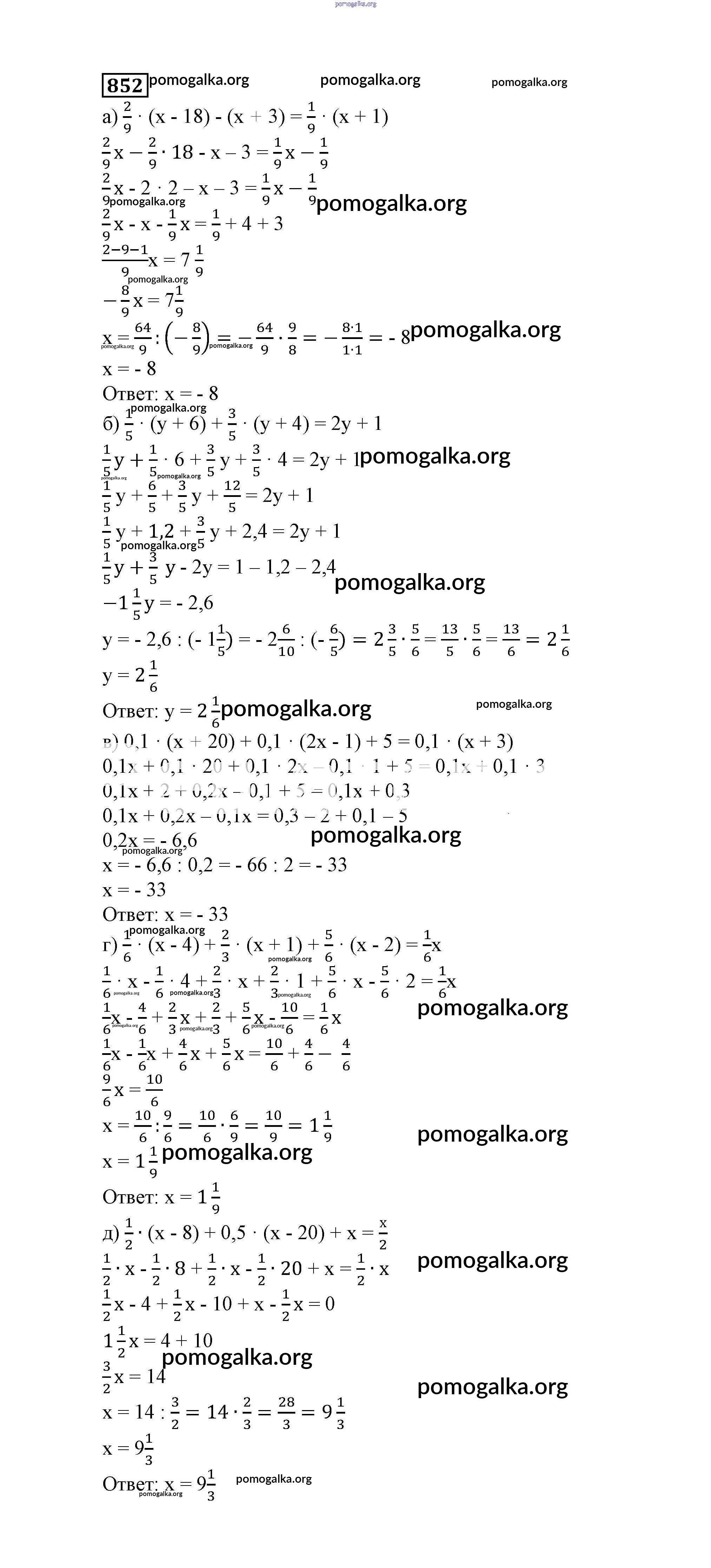 Готовые ответы - Математика 6 класс Истомина Н.Б. - задание 852
