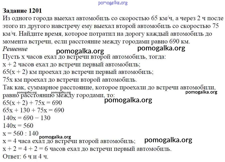 Готовые ответы - Математика 6 класс Мерзляк А.Г. - глава 4 1201