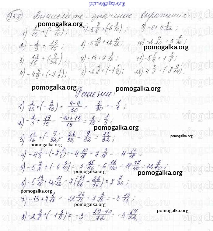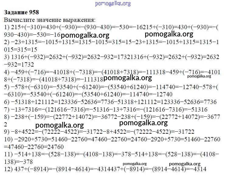 Готовые ответы - Математика 6 класс Мерзляк А.Г. - глава 4 958