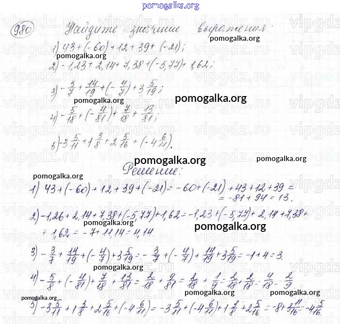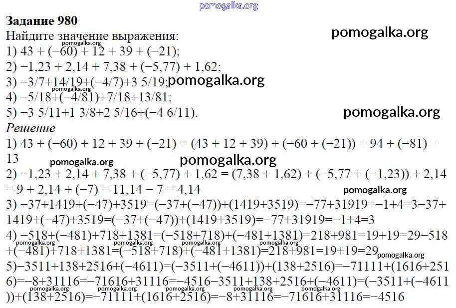 Готовые ответы - Математика 6 класс Мерзляк А.Г. - глава 4 980