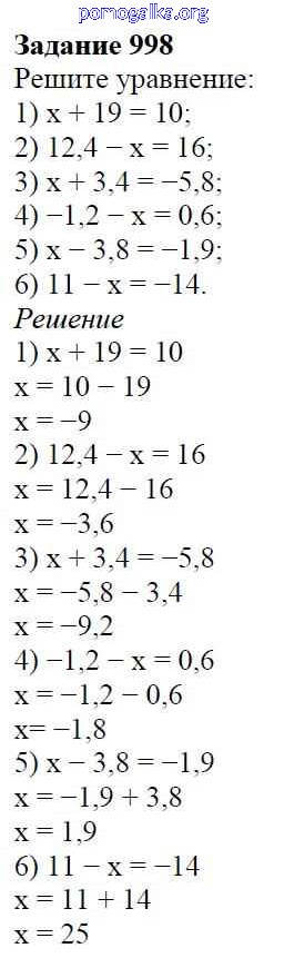 Готовые ответы - Математика 6 класс Мерзляк А.Г. - глава 4 998