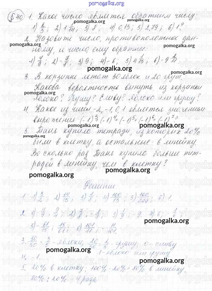 Готовые ответы - Математика 6 класс Мерзляк А.Г. - решаем устно 40