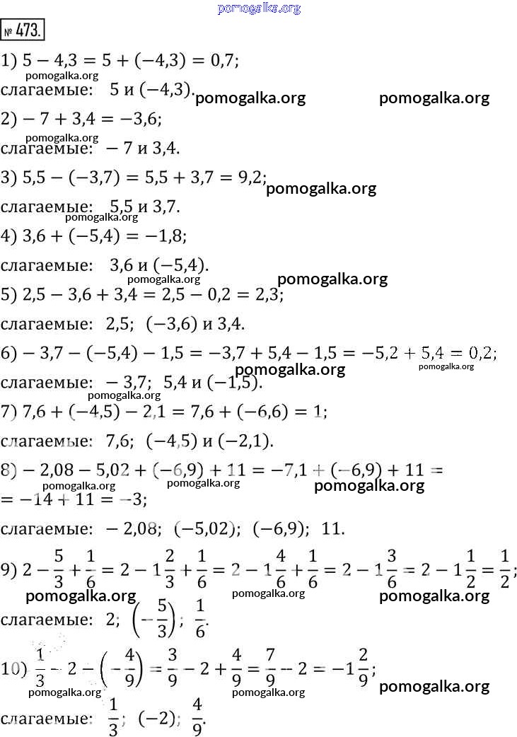 §15. Сложение и вычитание чисел. №452-487