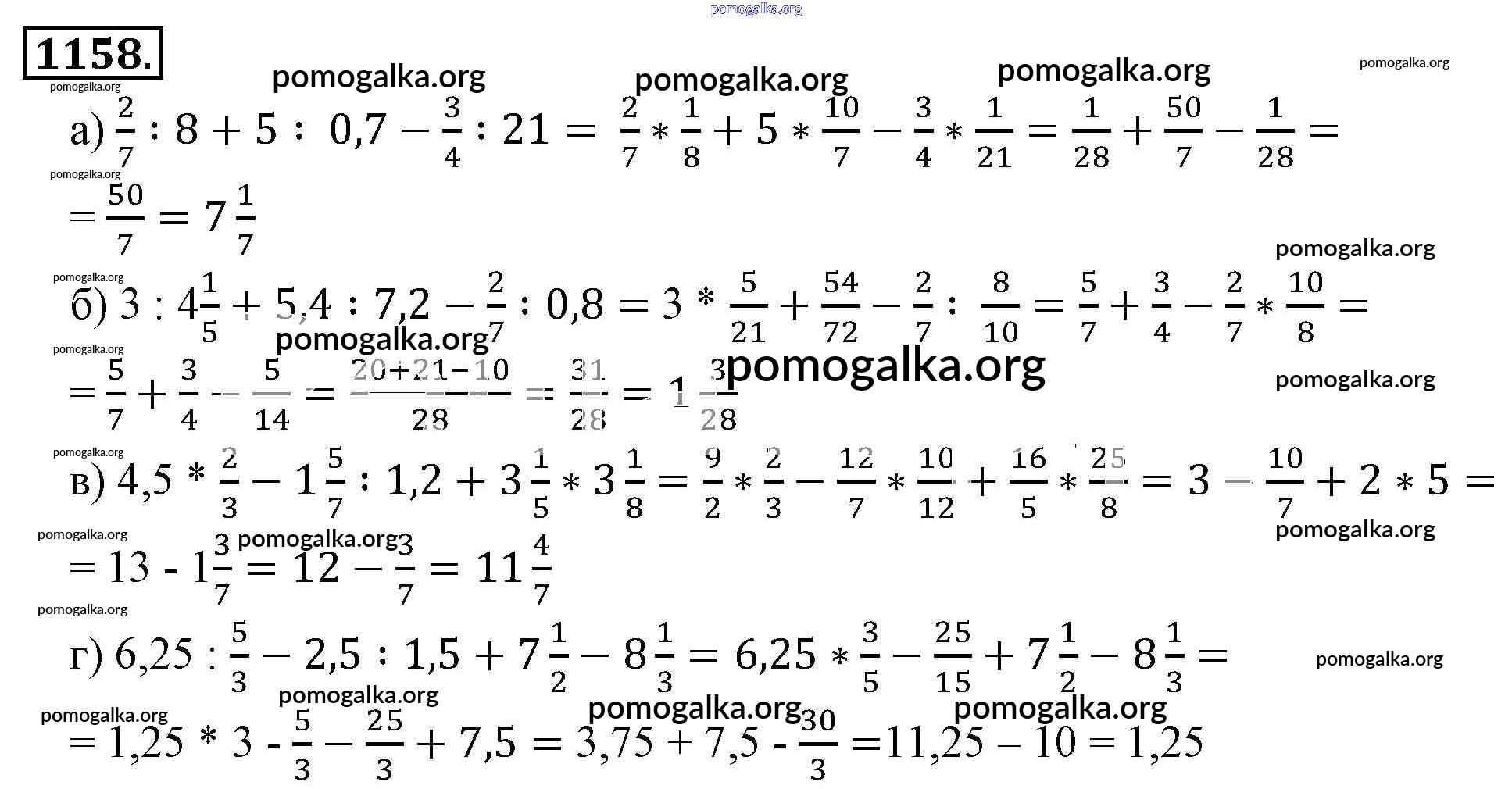 Готовые ответы - Математика 6 класс Никольский С.М. - номер 1158