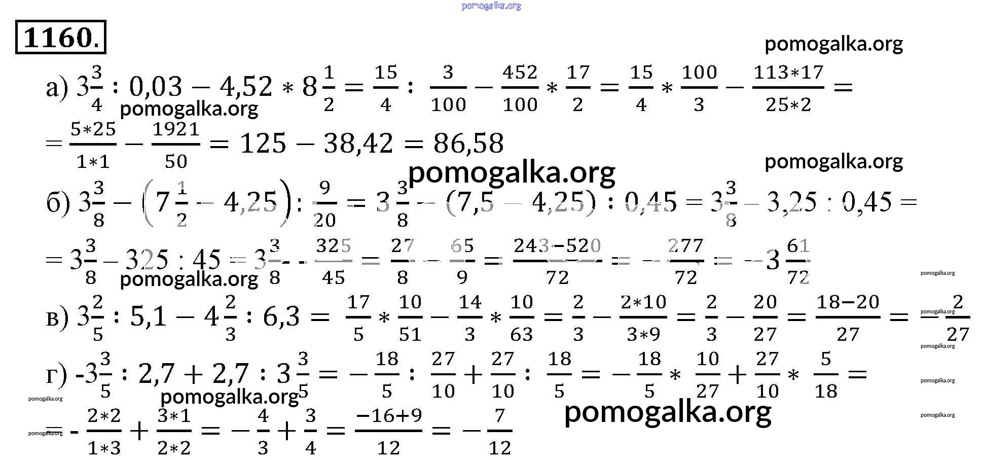 Готовые ответы - Математика 6 класс Никольский С.М. - номер 1160