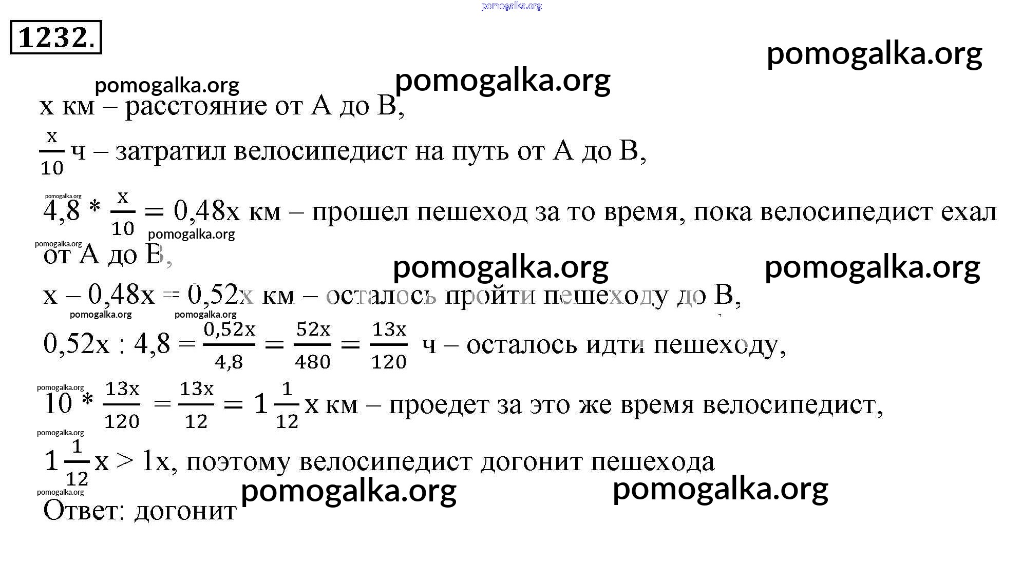 Готовые ответы - Математика 6 класс Никольский С.М. - номер 1232