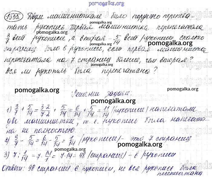Готовые ответы - Математика 6 класс Виленкин Н.Я. - §9 глава 2 1555