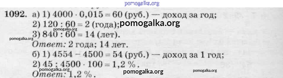 Готовые ответы - Математика 6 класс Зубарева И.И. - упражнение 1092